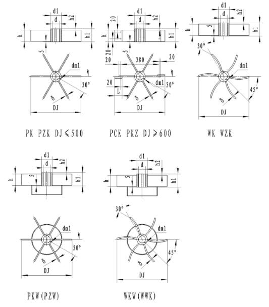 46、三斜窄葉整體開啟渦輪式ZK 47、三斜窄葉可拆開啟渦輪式ZCK